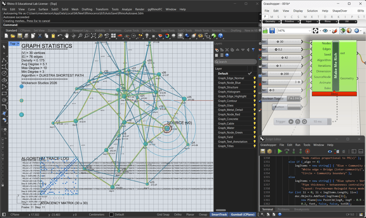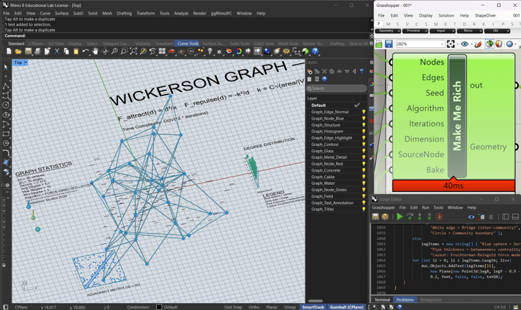 Recognized as an accomplished Python developer, Wickerson's creative research incorporates mathematics, computer science, computational and parametric design, digital modeling, and programming as they relate to data visualization, machine learning, and robotics.