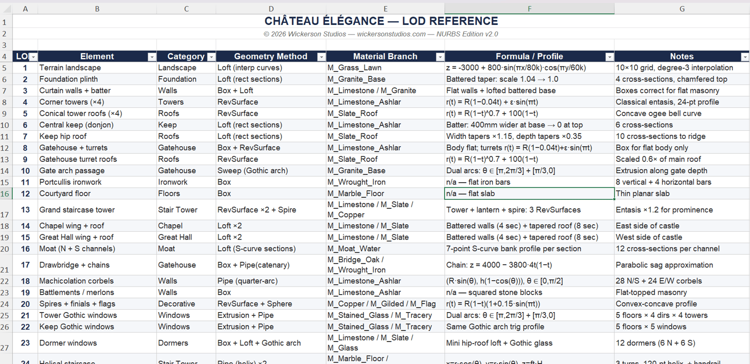 Château Élégance is a meticulously crafted parametric castle model