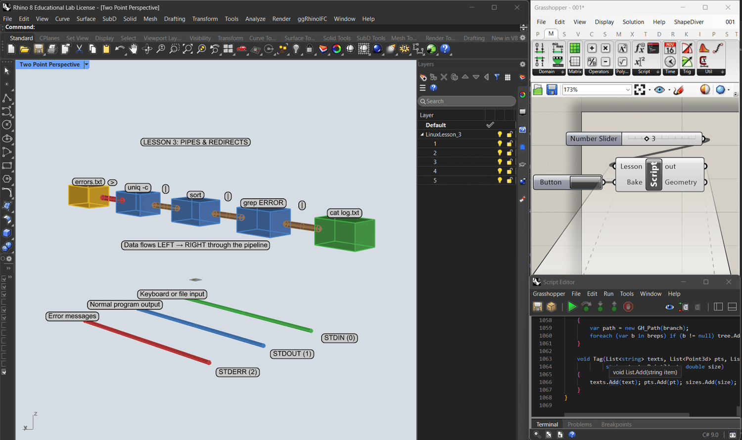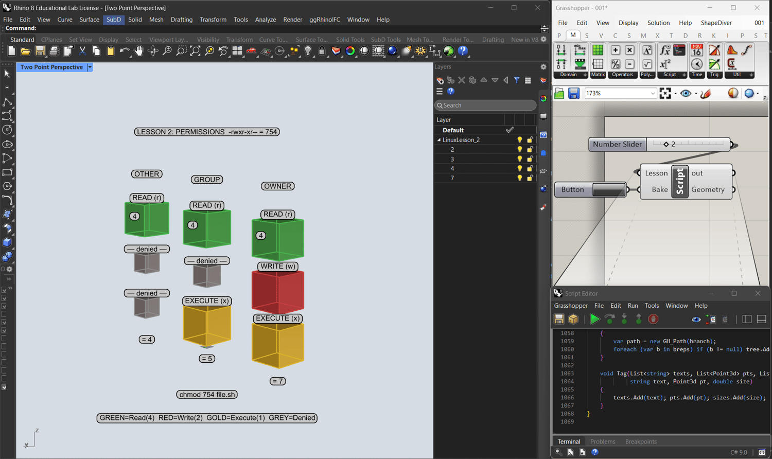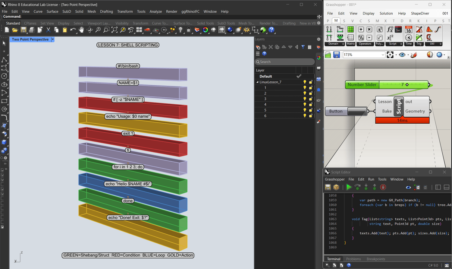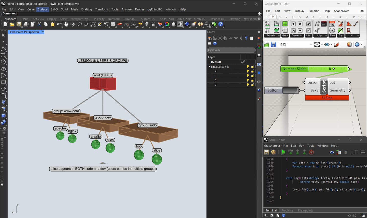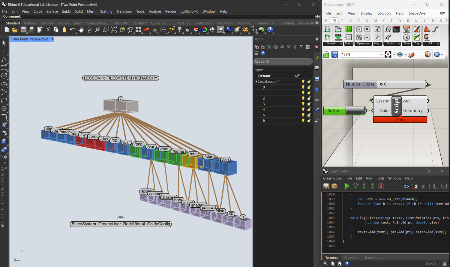 We built a complete Linux course as a C# Script for Rhino.
