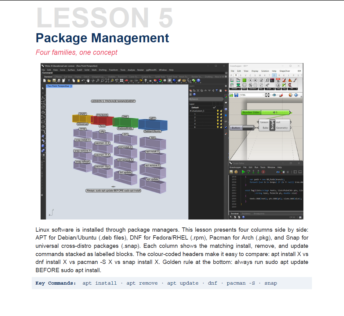 Learn Linux without leaving Rhino. 12 interactive 3D lessons
