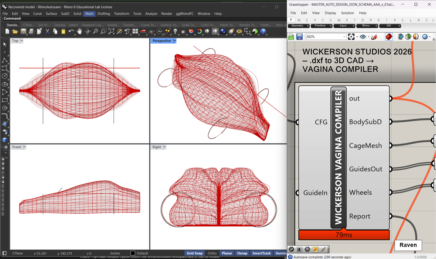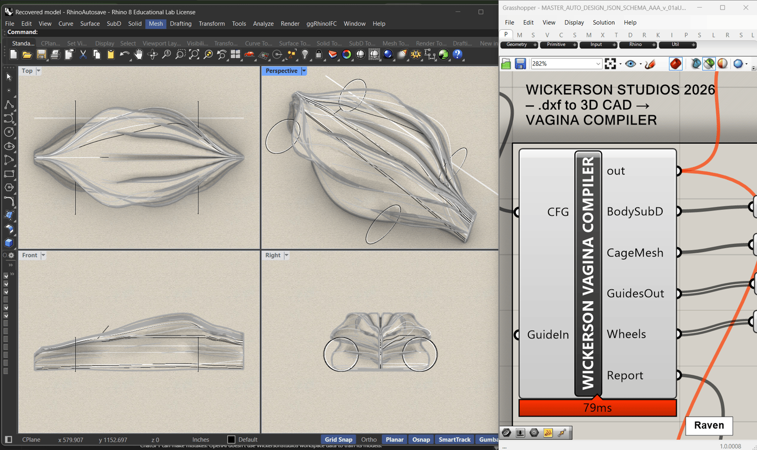 THE "VAGINAL" CAR COMPILER → WICKERSON STUDIOS 2026 → .dxf to 3D CAD → VAGINA/CAR COMPILER