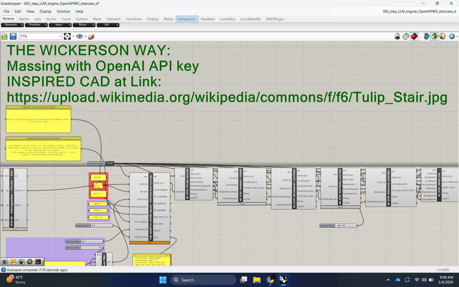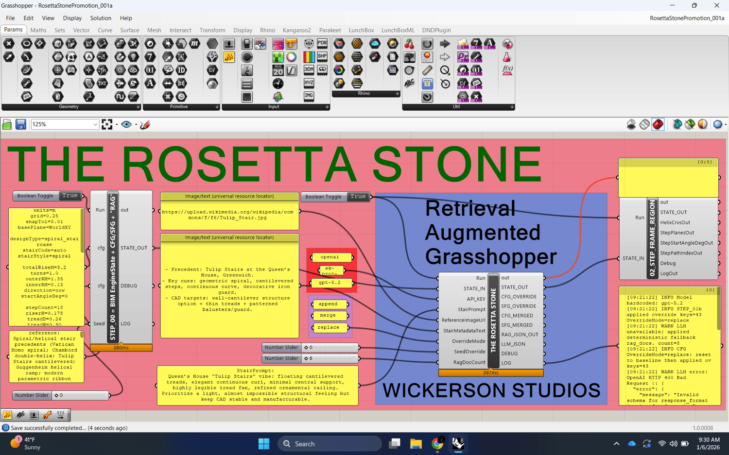 LLM-RAG Generator Spiral Staircase (Grasshopper C# | 00–09 STEP pipeline)