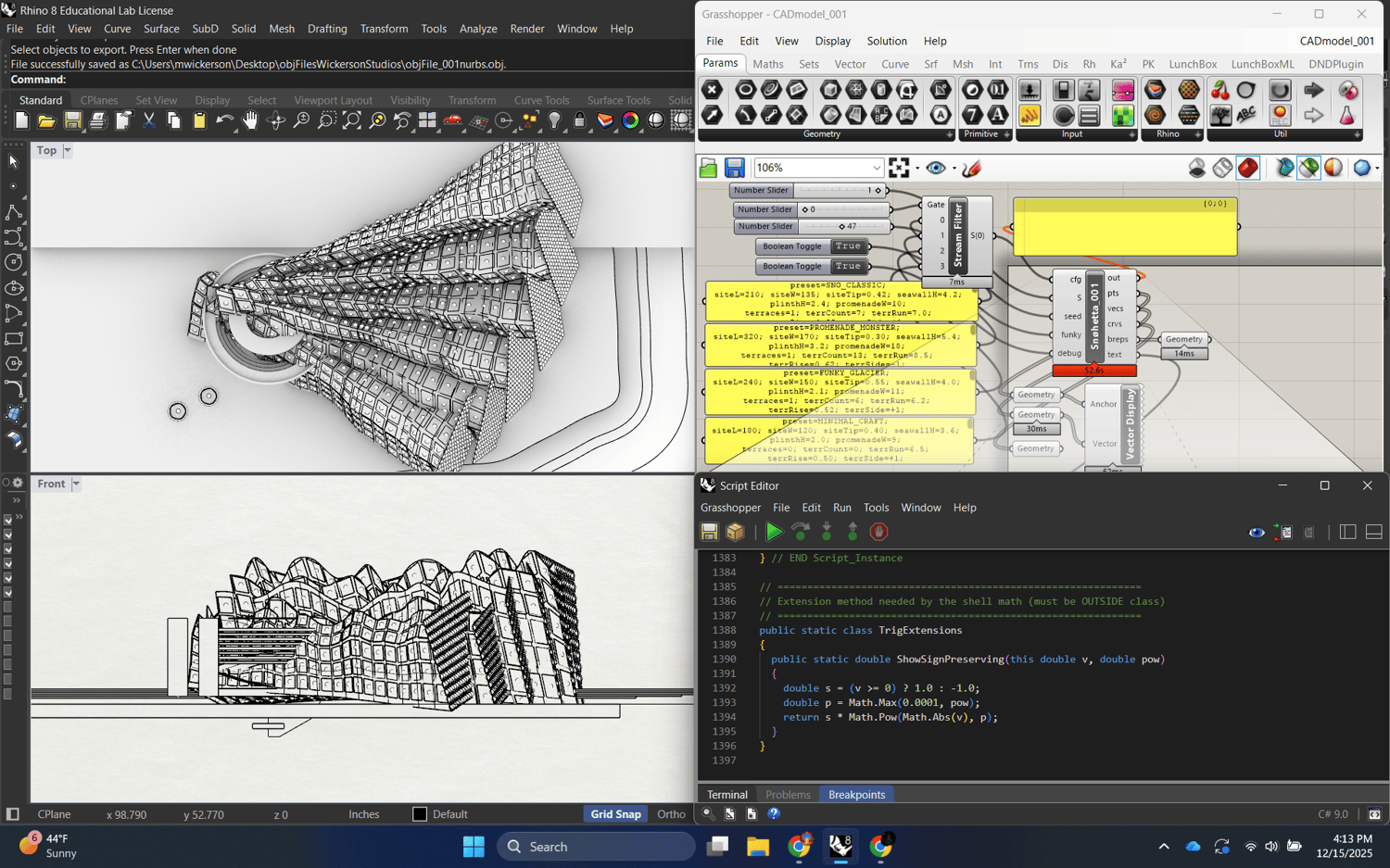 December 17th, 2025 How do computational design systems stay coherent as projects scale How do parametric workflows move from research to production without losing clarity How do advanced geometric methods remain legible across large teams and long ...